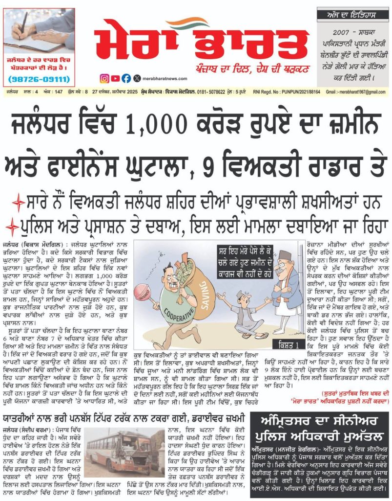MERA BHARAT NEWSPAPER 27 DECEMBER 2025 You Might Also Like MERA BHARAT NEWSPAPER 22 January 2026 January 22, 2026 MERA BHARAT NEWSPAPER 21 JANUARY 2026 January 21, 2026 MERA BHARAT NEWSPAPER 20 JANUARY 2026 January 20, 2026